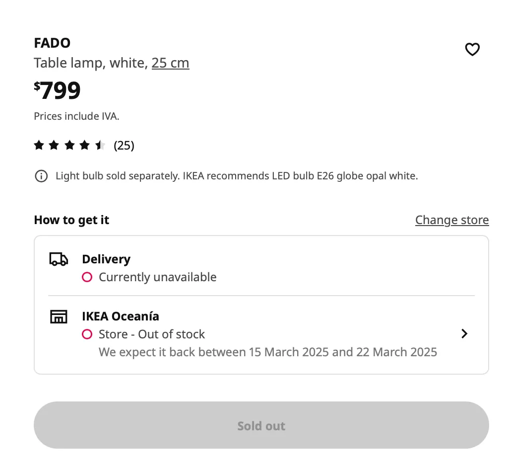 La popularidad de esta lámpara ha hecho que su stock sea limitado tanto en México como en otras partes del mundo, así que te recomiendo estar al pendiente de su disponibilidad en el sitio web. Al momento de escribir este blog, no hay stock en IKEA México.
