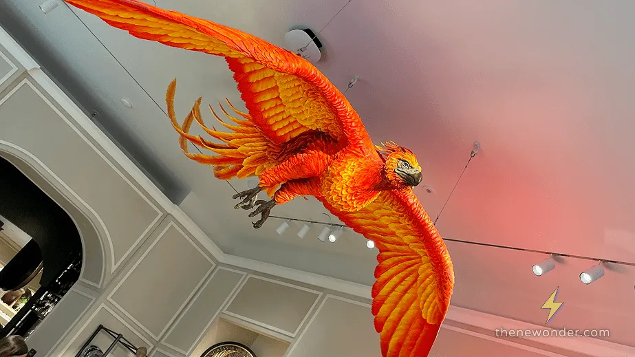 La entrada es totalmente gratuita. Al ingresar, lo primero que captará tu atención es el Fawkes, el majestuoso Fénix de Dumbledore, resguardando la entrada desde lo alto del techo. Pero este es sólo el comienzo, a medida que explores el lugar, encontrarás otras criaturas mágicas, como el basilisco en el sótano y las lechuzas repartidas por toda la tienda, lo cual vuelve aún más especial el recorrido.